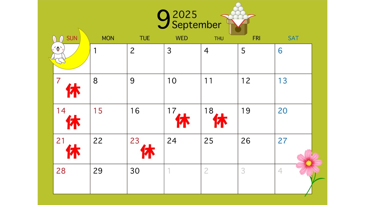 9月・10月の営業予定